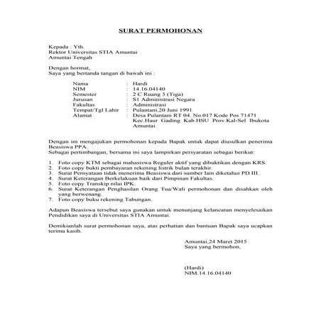 Doc Contoh Surat Permohonan Beasiswa Kuliah Devi Lisdiani Academia Edu