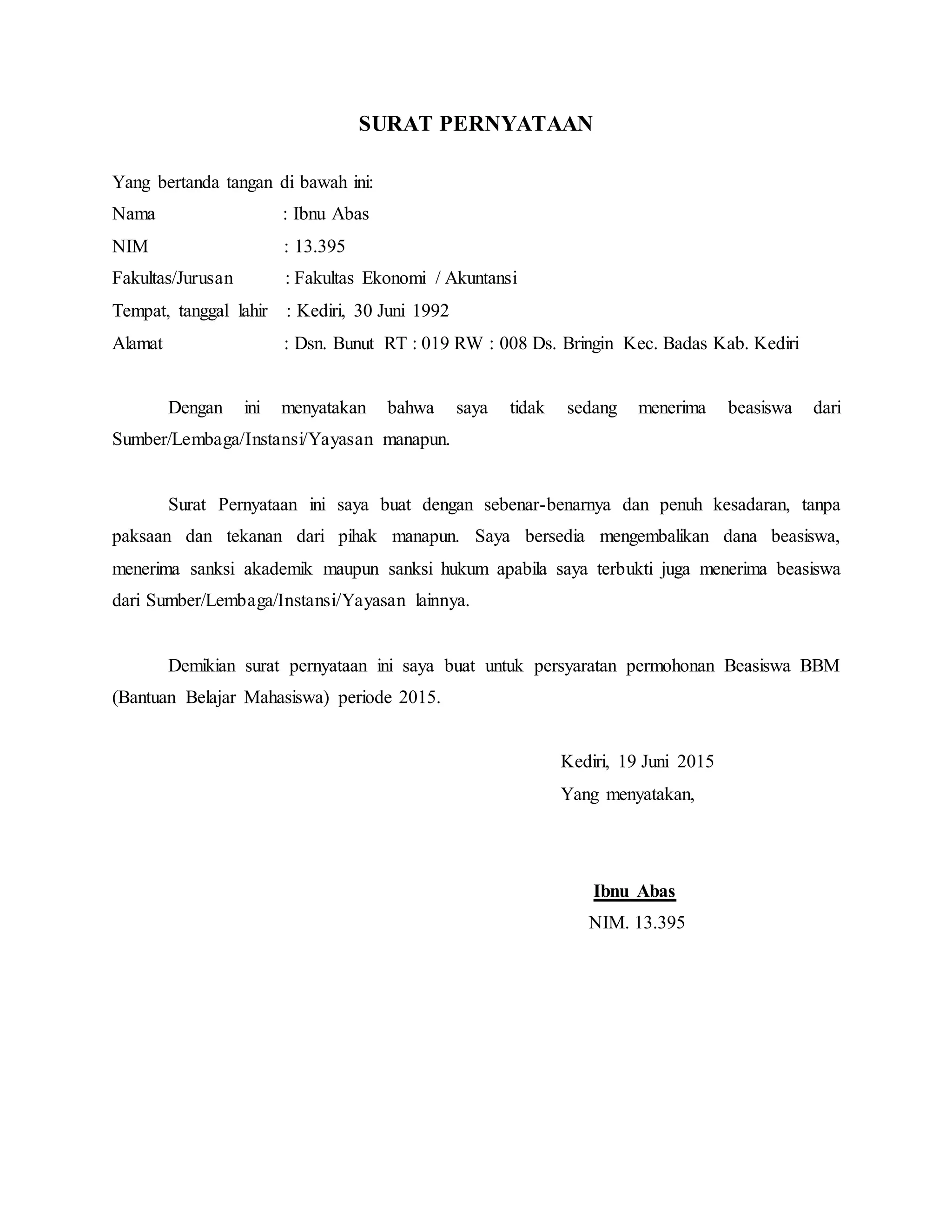 Surat Permohonan Dan Surat Pernyataan Mengajukan Beasiswa